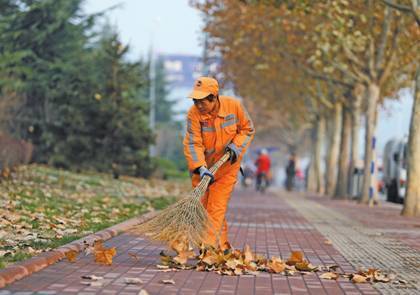 那一身橘紅色的衣服,無論何時何地,都是馬路上的亮點,他們經(jīng)歷風(fēng)吹日曬,皮膚已經(jīng)黝黑了,他們依然不停歇,日夜忙碌。他們沒有光鮮亮麗的外衣,卻是我們這座城的美容師,把我們這座城打扮的干干凈凈,漂漂亮亮的。他們是值得我們記住,值得我們關(guān)懷,值得我們尊重的環(huán)衛(wèi)工人。